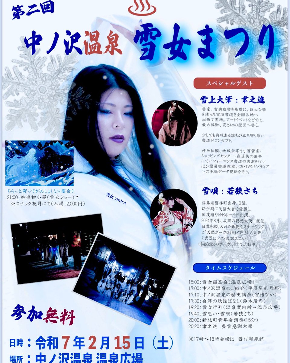 去年もこの「雪女まつり」に来たんだけど、去年は朝からずっと雨で、外での行事ができなかったんです。でも今年は天気の心配はなし!最後までしっかり参加してきました。