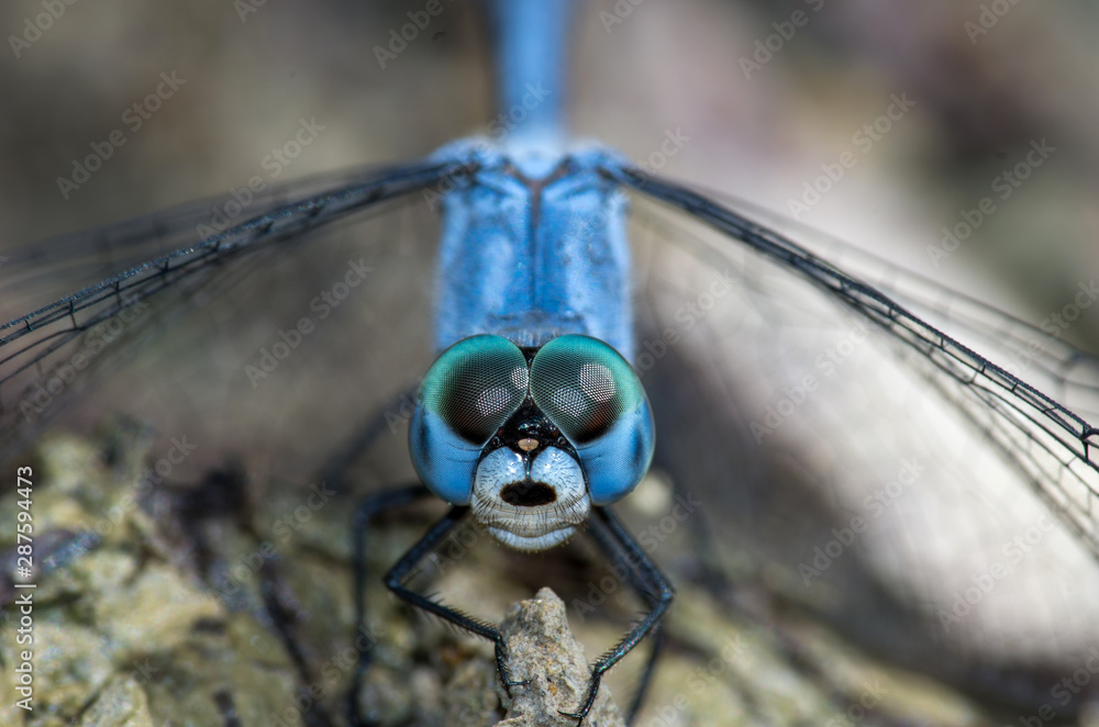名前はナニワトンボ。トンボなのに日向を好まず、沼地や池のそばの木陰で生活しているトンボです。成熟したオスは、少しくすんだ青白色をしています。別に、日陰で生活しているからこんな色、というわけではありませんけどね。